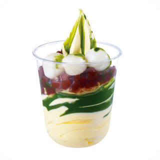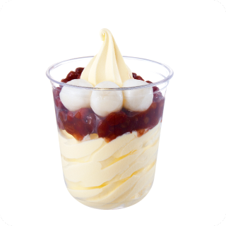 濃密なバニラを感じられるオリジナルソフトクリームに、しっかりとしたあずき感が感じられる北海道産ゆであずきをトッピング!白玉のもちもち感との相性抜群の和風パフェ。 |