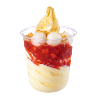 濃密なバニラを感じられるオリジナルソフトクリームに、果肉感のあるなストロベリーソースをトッピング!もちもちの白玉とクラッシュサブレの食感も楽しい豪華なパフェ。 |