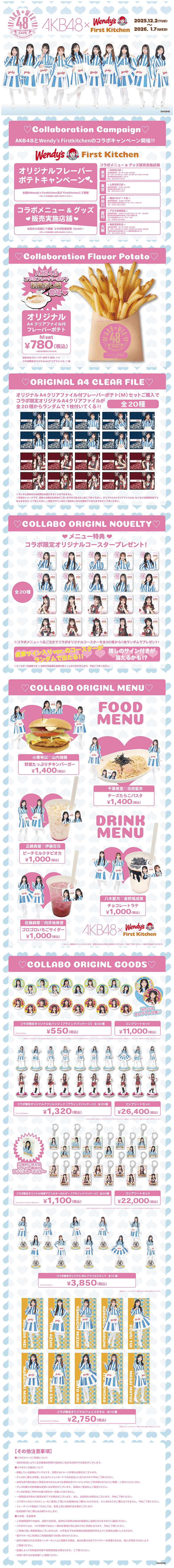 - ¥¦¥§¥ó¥Ç¥£¡¼¥º¡¦¥¸¥ã¥Ñ¥ó³ô¼°²ñ¼ÒµÚ¤Ó¡¢¥Õ¥¡¡¼¥¹¥È¥¥Ã¥Á¥ó³ô¼°²ñ¼Ò¡Ê½êºßÃÏ:ÅìµþÅÔ¿·½É¶è¡¢Âåɽ¼èÄùÌò:»ç´Ø½¤¡Ë¤Ï¡¢12·î2Æü¡Ê²Ð¡Ë¤è¤ê¡¢¥¦¥§¥ó¥Ç¥£¡¼¥º¡¦ ¥Õ¥¡¡¼¥¹¥È¥¥Ã¥Á¥ó¤È¥Õ¥¡¡¼¥¹¥È¥¥Ã¥Á¥ó¡Ê¶¥ÇϾìŹ¤ò½ü¤¯¡Ë¤Ë¤Æ¡¢º£Ç¯12·î¤Ç20¼þǯ¤ò·Þ¤¨¤ë¹ṉ̃Ū¥¢¥¤¥É¥ë¡ØAKB48¡Ù¤È¤Î¥³¥é¥Ü¥¥ã¥ó¥Ú¡¼¥ó¤ò³«ºÅ¤·¤Þ¤¹¡£¥³¥é¥Ü¤òµÇ°¤·¤Æ¡¢AKB48¤Î¥á¥ó¥Ð¡¼¤¬¹Í°Æ¤·¤¿¥Õ¥ì¡¼¥Ð¡¼¥Ý¥Æ¥È¡ÖÏÂÉ÷¤À¤·Ì£¡×¤òÈÎÇ䤷¤Þ¤¹¡£¤µ¤é¤Ë¡¢´°Á´»£¤ê²¼¤í¤·¥Ó¥¸¥å¥¢¥ë¤ò»ÈÍѤ·¤¿¡¢¥ª¥ê¥¸¥Ê¥ëA4¥¯¥ê¥¢¥Õ¥¡¥¤¥ë¡ÊÁ´20¼ï¡Ë¤È¡¢¤ª¹¥¤¤Ê¥Õ¥ì¡¼¥Ð¡¼¥Ý¥Æ¥ÈM¥»¥Ã¥È780±ß¡ÊÀǹþ¡Ë¤ò1·î7Æü¡Ê¿å¡Ë¤Þ¤Ç¤Î´ü´ÖÃæ¡¢¿ôÎ̸ÂÄê¤ÇÈÎÇ䤷¤Þ¤¹¡£¿ô¤Ë¸Â¤ê¤¬¤¢¤ê¤Þ¤¹¤Î¤Ç¤ªÁá¤á¤Ë¤´ÍèŹ¤¯¤À¤µ¤¤¡£¤Þ¤¿¡¢5ŹÊÞ¸ÂÄê¤ÇŹÆâÁõ¾þ¤Î¼Â»Ü¤ä¡¢¸ÂÄê¥á¥Ë¥å¡¼¡¦¸ÂÄꥰ¥Ã¥º¤òÈÎÇ䤷¤Þ¤¹¡£ÆâÍÆÀ¹¤ê¤À¤¯¤µ¤ó¤Ê¡ØAKB48¡Ù¥³¥é¥Ü¤ò¤¼¤Ò¤ª³Ú¤·¤ß¤¯¤À¤µ¤¤¡£