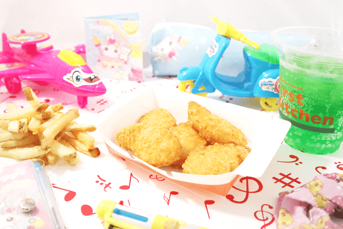 - 数種類から選べるおまけも、キッズセットの大きな魅力。走る・光る・飛ぶおもちゃから、お母さんと遊べるミニゲームセット、かわいいアクセサリーや文具まで、バラエティの豊富さにもこだわっています。